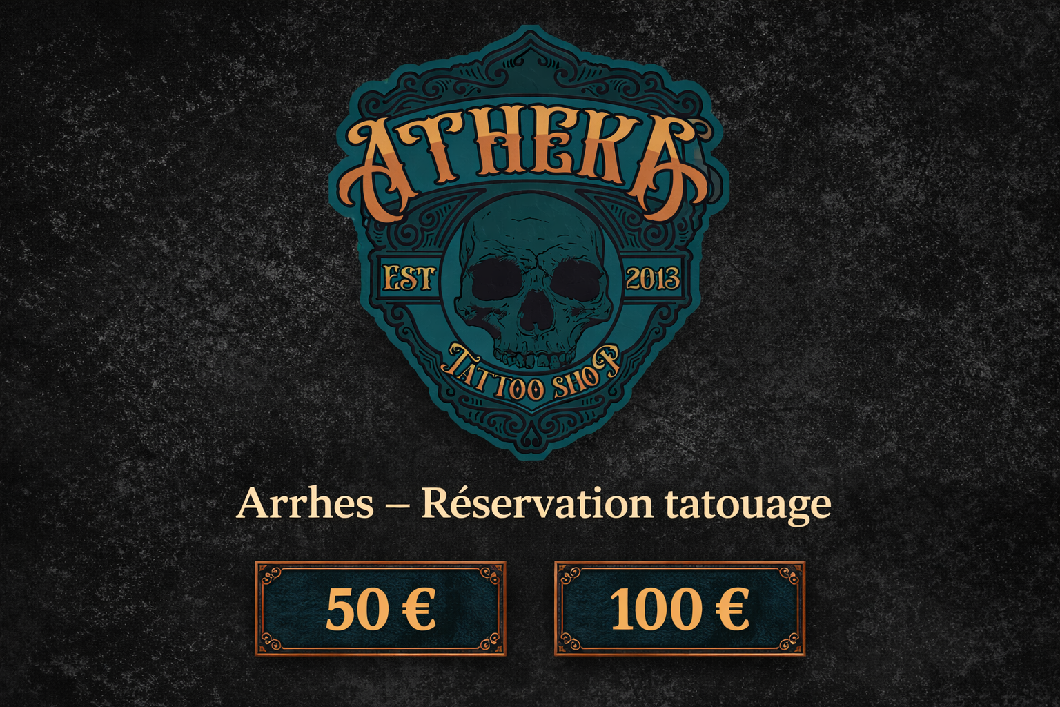 Arrhes réservation tatouage Atheka Tattoo Shop – paiement 50€ ou 100€Les arrhes servent à bloquer un créneau de rendez-vous et à engager mutuellement le client et le salon.